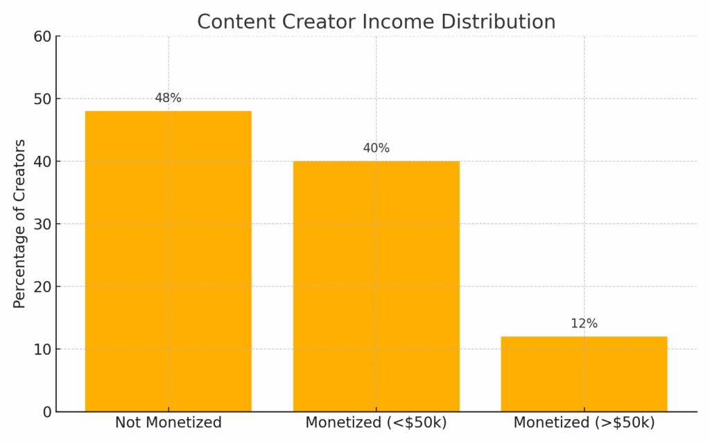 And while 12% of full-time creators make money over $50,000 a year, the majority still struggle to turn viral fame into consistent, dependable income.